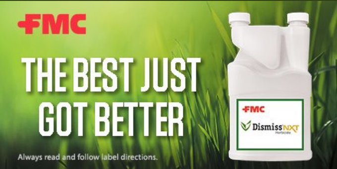 FMC Dismiss NXT Herbicide - Lawn and Pest Control Supply FMC Dismiss NXT Herbicide features a new and improved formula which provides an effective control of yellow nutsedge, kyllinga and other labeled weeds on turfgrasses. Dismiss NXT guarantees a quick and long-lasting result in controlling unwanted weeds on both cool and warm-season turf.