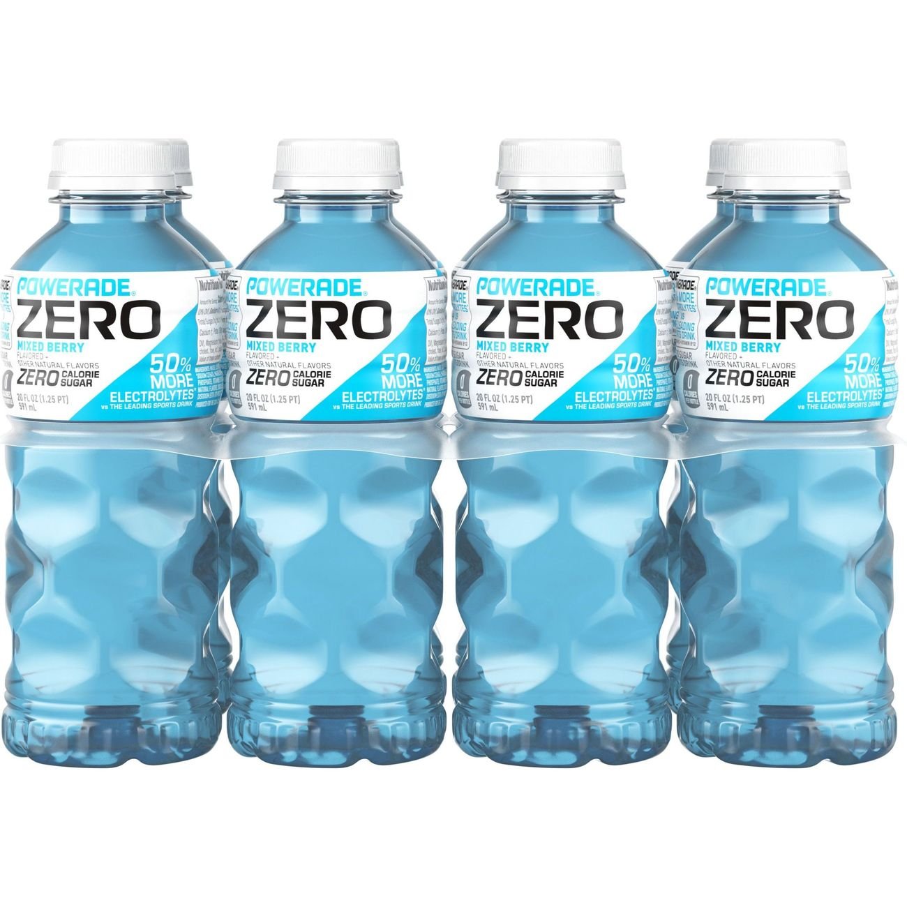 Powerade® Zero Mixed Berry - Sugar-free Drink | Powerade® Power through with a sugar-free sports drink, POWERADE® ZERO SUGAR MIXED BERRY. Each bottle contains B vitamins and electrolytes to keep you hydrated and replenished. Cookie Notice. We use cookies to provide a personalized site experience. ... Nutrition Facts 2.5 servings per container. servingsize 12 fl oz (360 mL) amountperserving calories ...