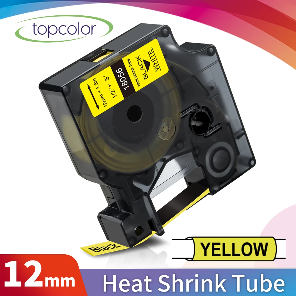 Topcolor 18056 Industrial Tape 12mm Compatible Dymo Label Printer Heat Shrink Tube 1/2 for Dymo Rhino 6000 5000 4200 Label Maker