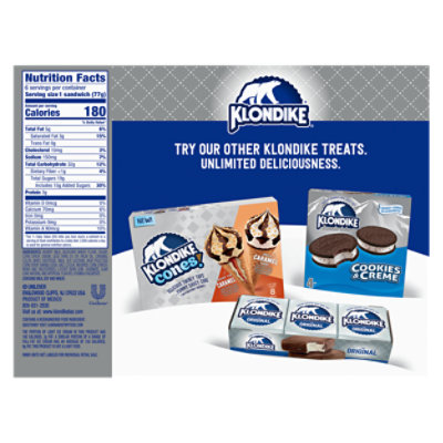 Klondike Original Vanilla Ice Cream Bars Dipped in Chocolately ... - Target Try Klondike frozen treats in 14 flavors for unlimited deliciousness. All our treats are coated in a rich chocolatey shell and made with high-quality ingredients. Klondike Original Ice Cream & Frozen Dessert Bar is certified as a kosher ice cream by KOF-K Kosher Supervision, one of the world's leading certification and supervision agencies.