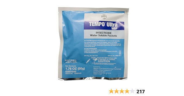 stoppestinfo.com › 641-tempo-insecticide-reviewsTempo Insecticide Effectiveness & Reviews | 2021 Buyer’s Guide May 13, 2022 · Tempo WP Ultra Pest Control Insecticide – 14.8 oz Powder Formulated with 10% cyfluthrin, it is the fastest-acting insecticide on the market. Each tub makes up to 42 gals. of the solution. It is effective against ticks, ants, spiders and can be used around food. Check the current price: Bayer TRTD11597 Tempo Ultra WSP Water Soluble Insecticide