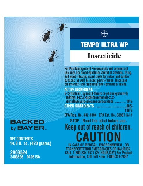 Tempo WP Ultra Insecticide Product | Bayer Environmental Science US Bayer Tempo Ultra WP is the fastest-acting insect control on the market with broad-spectrum control of more than 100 nuisance pests like the emeral ash borer and bagworms. United States Pest Management & Public Health