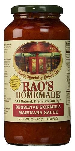 Amazon.com : Rao's Homemade Tomato Sauce, Sensitive Formula, 24 oz ... Rao's Sensitive Marinara Sauce is a versatile carb conscious marinara sauce that offers truly traditional homemade Italian flavor, easily available anytime to pair with your preferred pasta, to use as an ingredient in your favorite recipe, or to accompany your favorite meatballs.