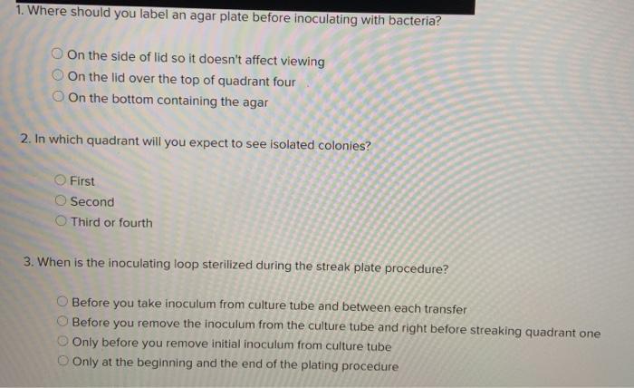 Proper method to label a petri plate prior to pour plating/inoculation Proper method to label a petri plate prior to pour plating/inoculation, with initials, date, ... A) Use the word inoculate in a sentence that relates to ... - Numerade where should a label be written on an agar plate? why? Discussion. You must be signed in to discuss. Correct labelling of agar plates in microbiology - YouTube May 28, 2019 ... Welcome to our suite of NUI Galway Microbiology teaching videos. We hope that they will guide you in performing your experiments in a ...