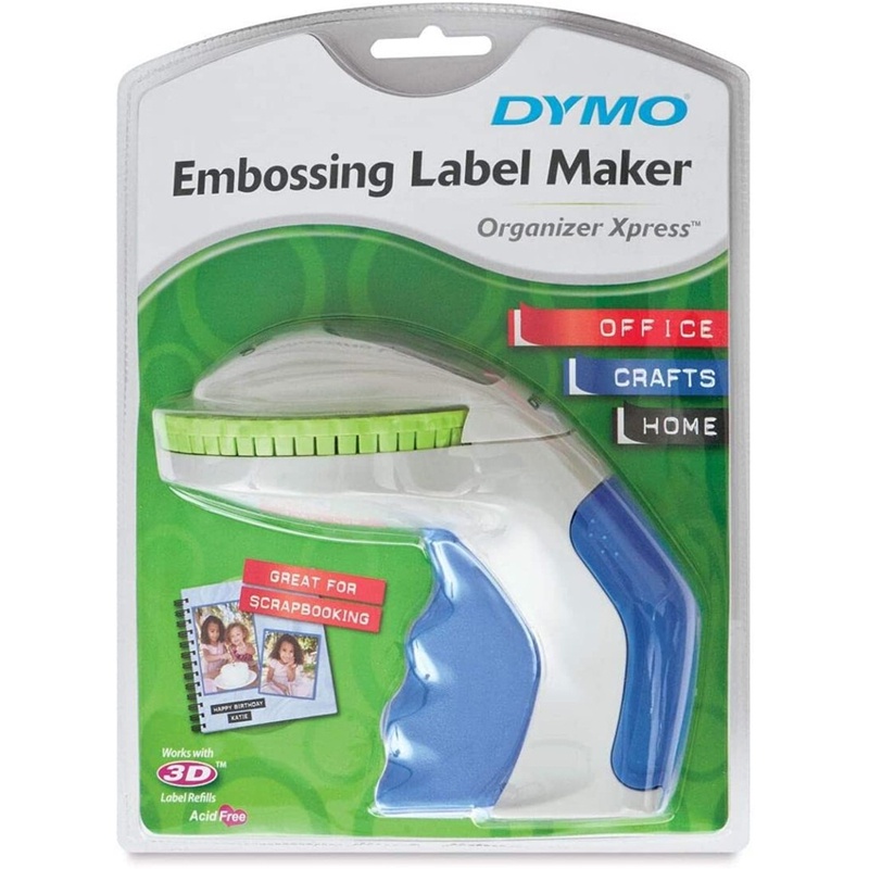 DYMO Organizer Xpress Embossing Label Maker | Dymo With DYMO, it's easy to keep organized and have fun doing it. Features Ergonomic design for ease of use Embossing label maker with an intuitive turn-and-click system Type using a 49-character wheel Enjoy durable construction for extra-long life No batteries needed Balanced to stand on any counter or worktop Specifications Item # 12965