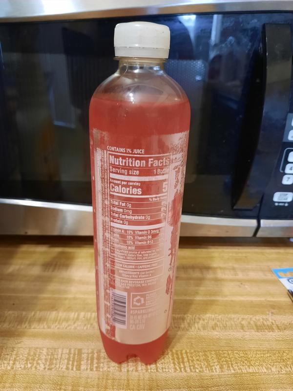 Ice, Sparkling Water Beverage with Juice, Pink Grapefruit Nov 4, 2021 ... Nutrition Facts. 12 servings per container. Serving Size1 bottle (503mL). Amount Per Serving. Calories15. % Daily Value*. Total Fat0 g.