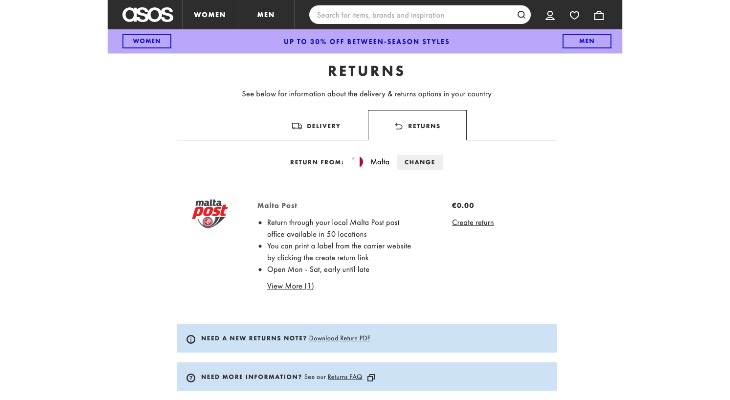 Asos returns note