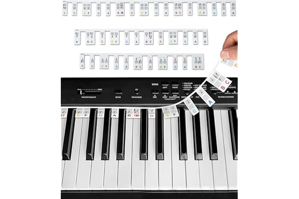 Piano Stickers for 49/61 Key Keyboard, Transparent, Laminated, Ultra Thin to the touch, Removable. 36 stickers for the white keys. Made in the UK. ...