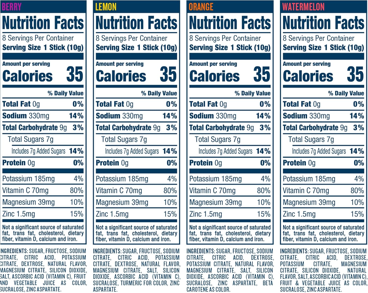 DripDrop - Electrolyte Powder for Dehydration Relief Fast - Fruit Punch Sugar, Fructose, Sodium Citrate, Citric Acid, Potassium Citrate, Magnesium Citrate, Natural Flavor, Dextrose, Fruit and Vegetable Juice for Color, Salt, ... Dripdrop Electrolyte Powder For Dehydration Relief - Berry - 8ct Ingredients: sugar, fructose, sodium citrate, citric acid, natural flavor, potassium citrate, magnesium citrate, dextrose, salt, ascorbic acid (vitamin c) ... Dripdrop Electrolyte Powder For Dehydration Relief - Lemon - 8ct sugar, fructose, sodium citrate citric acid, natural flavor, potassium citrate, magnesium citrate, dextrose, salt, ascorbic acid (vitamin c), sucralose, ...