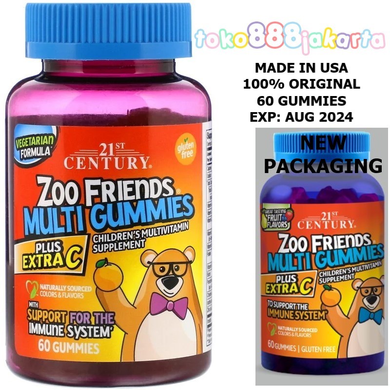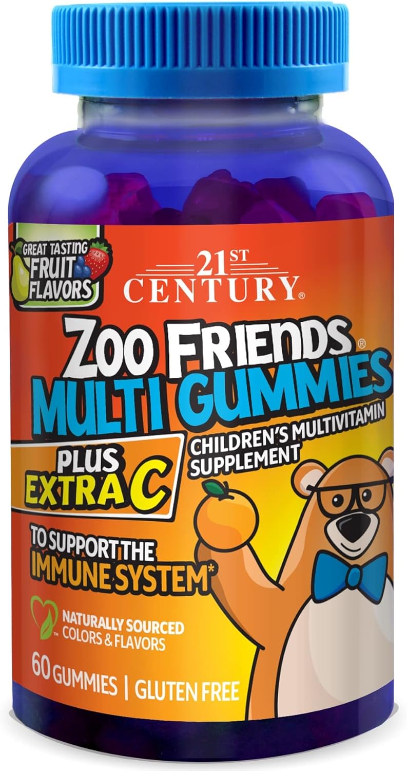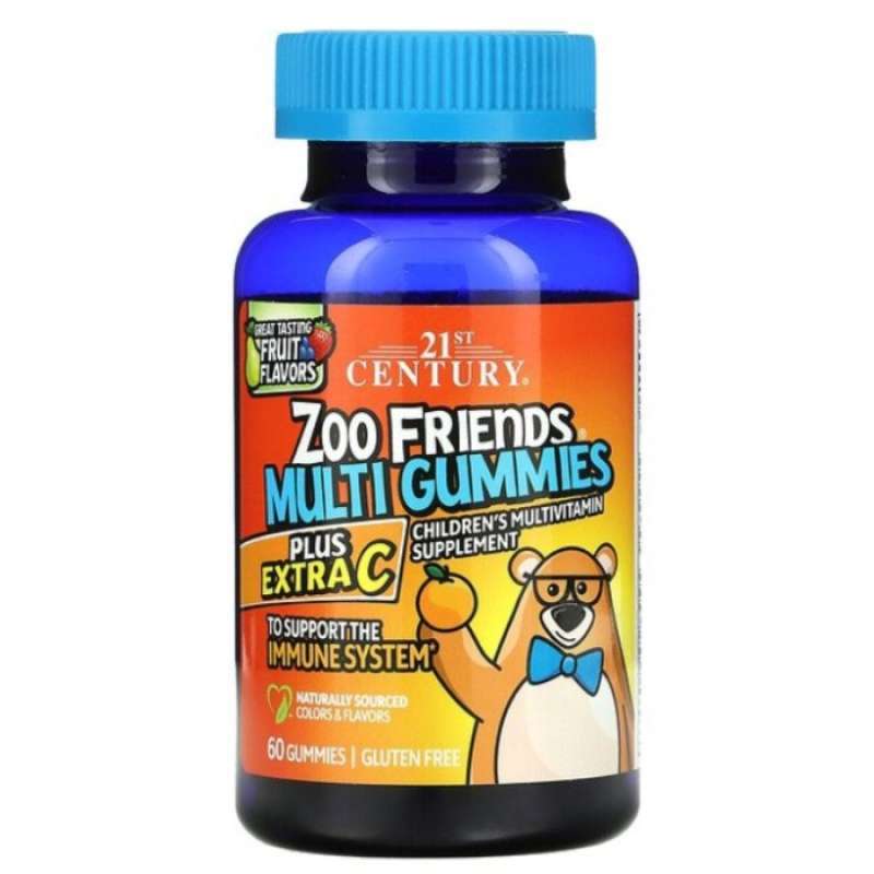 21st Century, Zoo Friends Multi Gummies, Plus Extra C, Great ... Great Tasting Fruit Flavors · Gluten Free · Children's Multivitamin Supplement · To Support the Immune System · Naturally Sourced Color & Flavors · Guaranteed ...